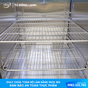 Kệ, giá đỡ bên trong tủ đều bằng inox |